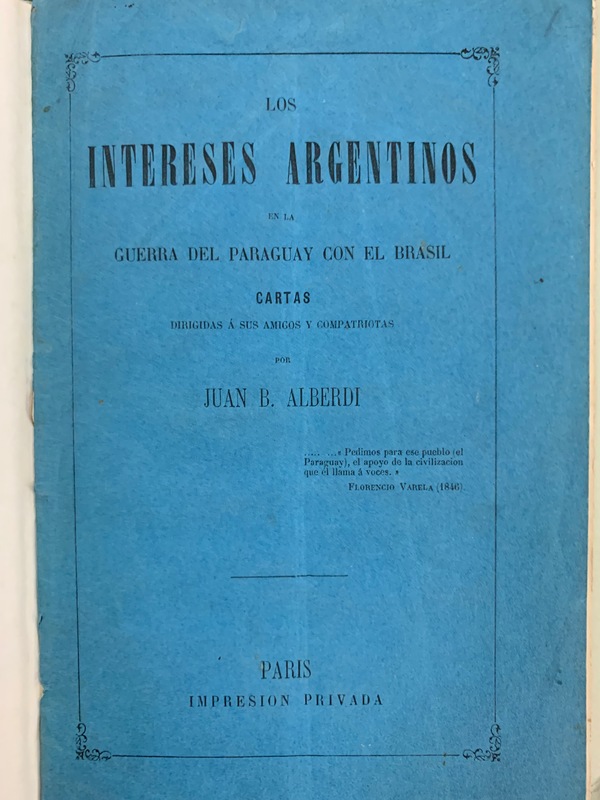 Alberdi’s letters in Los intereses Aargentinos en la Guerra del Paraguay con el Brasil : Cartas dirigidas a sus amigos y compatriotas tackle these questions and more.