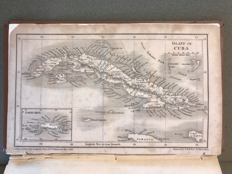 The page facing the title page has a map of Cuba—either the map was inked fairly heavily, or the paper stock was thin, as the ink lightly bled from the verso to the recto: the title page. The map itself indicates Cuban port cities, where slaves would often be sold. For a treatise on the economic benefits of abolishing slavery on an island with such commercial activity, this map clearly delineates the areas that would be most affected.